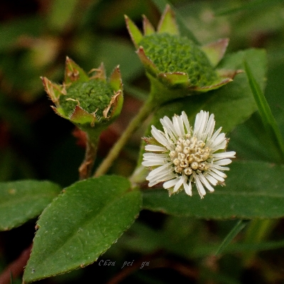 ==非台灣原生種== •毛鱧腸(Eclipta zippeliana) (歸化種;植株高大粗壯,葉大,顯得花小) |