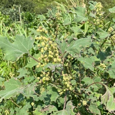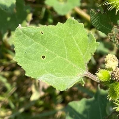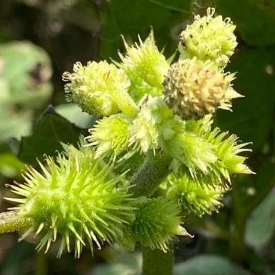 (Xanthium) ==非台灣原生種== ●蒼耳(Xanthium strumarium、羊帶來) (歸化種;雌雄同株異花,總狀花序,先生雌性頭花,再生雄性頭花。雌性頭花橢圓形,具鉤刺;雄性頭花,圓形) |