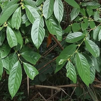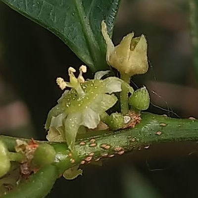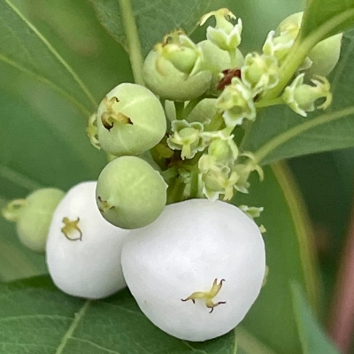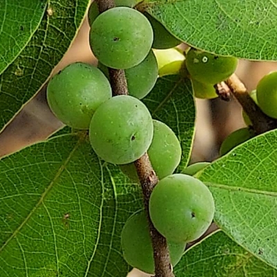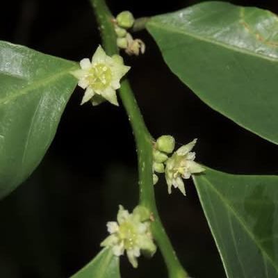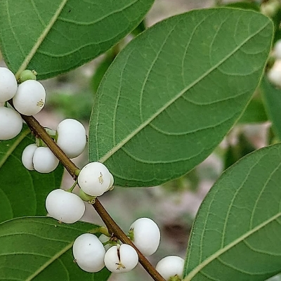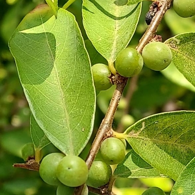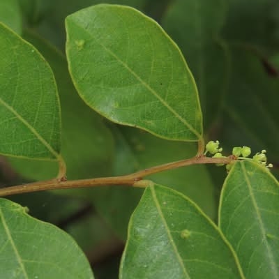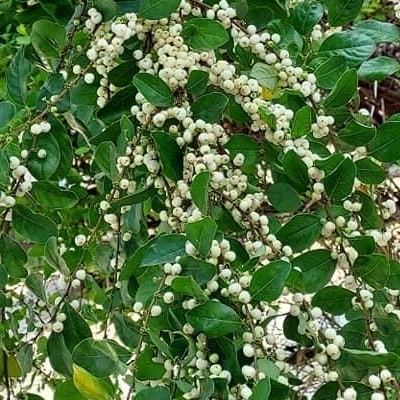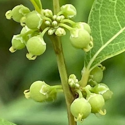 ●密花白飯樹(Flueggea virosa) (原生種; 灌木;單葉互生,倒卵形至倒長卵形;雌雄異株,單性花;小花簇生葉腋,未必比白飯樹密;果實兩型,漿果較大,白色;蒴果較小,綠色) | ||