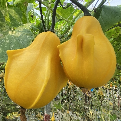 葫蘆科南瓜屬 更多照片: 20230531_06 照片:蟹老闆拍攝於雲林縣莿桐鄉綠金蕃茄南瓜農場 照片1、2:發現連體南瓜 |