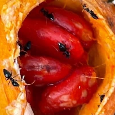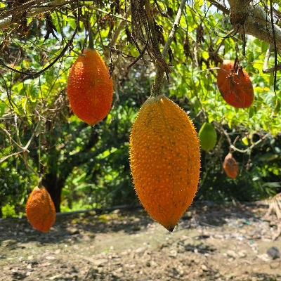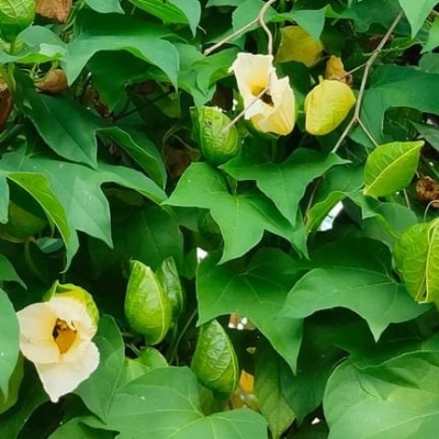 (歸化種;雌雄異花) ●木虌子(Momordica cochinchinensis、木鱉果) (原生種;台灣物種名錄標名木虌子;雌雄異株或單性同株;雄花具苞片;葉子多掌形三裂;種子扁形如甲魚(鱉),又像木頭製成,故稱木虌子) |
