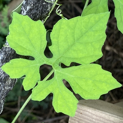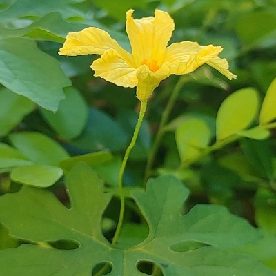 葫蘆科苦瓜屬 更多照片: 20201228_01 照片:蟹老闆拍攝於新北市土城區 照片1:雄花 照片2:花梗具心形托葉 |