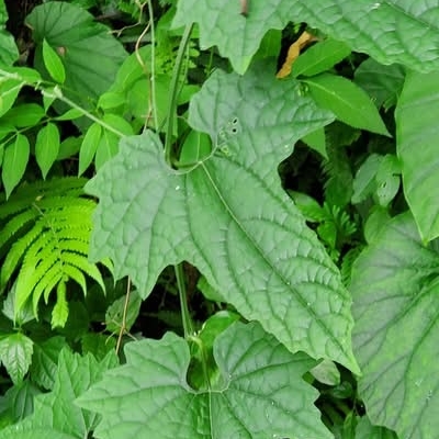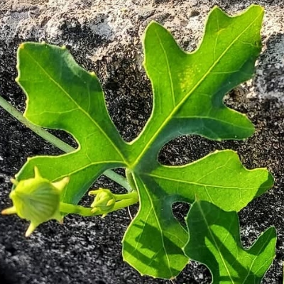 (Neoalsomitra、棒錘瓜屬) ==台灣原生種== ●穿山龍(Neoalsomitra integrifolia) (原生種;攀緣性草本;雌雄異株;掌狀複葉,互生,全緣;卷鬚與葉對生;花朵單性,白色;雄株花序圓錐狀,花多而密集;雌株花序總狀;瓠果圓柱狀,先端平截,成熟後先端三瓣裂;種子五角形,具翅) |