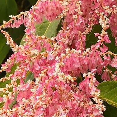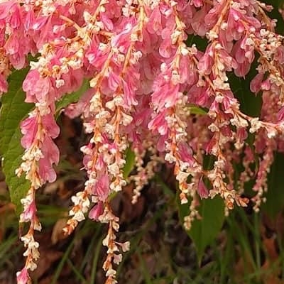 (Reynoutria) ==台灣原生種== ●虎杖(Reynoutria japonica、日本虎杖、日本蓼、假川七、黃藥子) (原生種;被列為世界百大外來侵種多年生草本;莖粗大,中空有節,如竹製手杖;雌雄異株;雄株的雄蕊比雌蕊長,結果率低,多見白花,少見紅果) |