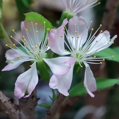 (Prunus、李屬、櫻屬) ==台灣原生種== ●庭梅(Prunus pogonostyla、毛柱郁李、毛柱櫻) (原生種;維基百科標名毛柱郁李) •布氏稠李(Prunus buergeriana) (原生種) •台灣稠李(Prunus obtusata) (原生種) ●墨點櫻桃(Prunus phaeosticta var. phaeosticta、黑星櫻) (原生種) ●刺葉桂櫻(Prunus spinulosa) (原生種;小喬木;世界植物在線 POWO 標示原生於日本和中國大陸(不包含台灣,其實台灣也是原生地);樹幹與櫻花類似具明顯皮孔;花期在秋天(而非春天),故名桂櫻;單葉互生,長橢圓形至倒卵狀披針形,刺鋸齒緣至全緣;總狀花序,腋生或頂生;花瓣5枚,卵圓形,白色;雄蕊多數,雌蕊柱頭單一;花盤具橘色腺體;果實橢圓形,成熟紫黑色) ●黃土樹(Prunus zippeliana、大葉桂櫻、大葉櫻、台灣黃土樹) (原生種;原生於台灣、日本至越南一帶;香港柴娃娃植網標名大葉桂櫻;常綠喬木;老枝幹呈黃土色,故有此名;單葉互生,長卵形至狹長橢圓形,鋸齒緣,薄革質,先端銳尖,葉柄具腺體;總狀花序,腋生,花序密集;花瓣5枚,白色,雄蕊多數,柱頭單一;核果長卵形) •冬青葉桃仁(Prunus phaeosticta var. ilicifolia) (原生種) |