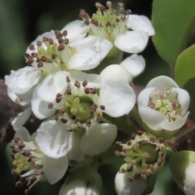 薔薇科石楠屬 更多照片: 20240505_02 照片:潘玉郎拍攝 花色可能被夕陽染紅 |