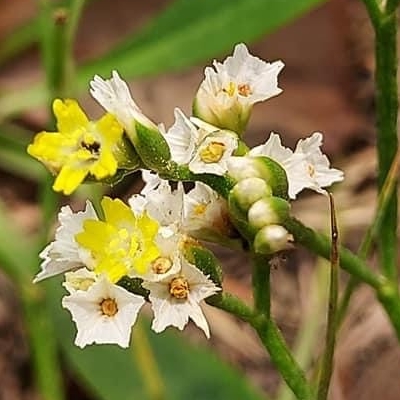 wrightii ) ●黃花烏芙蓉(Limonium wrightii var. luteum、黃花海芙蓉) (台灣特有種;世界植物在線 POWO 標示原生地只產於台灣;台灣物名錄查無此學名及中文名;多年生草本;短莖黑色(烏色);單葉叢生,倒披針形,全緣;圓錐花序,頂生,花莖直立抽高狀;小花序穗狀;花瓣5枚,黃色;花萼漏斗狀,5淺裂,白色,宿存) |
