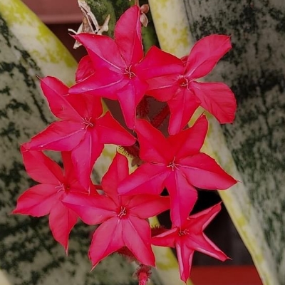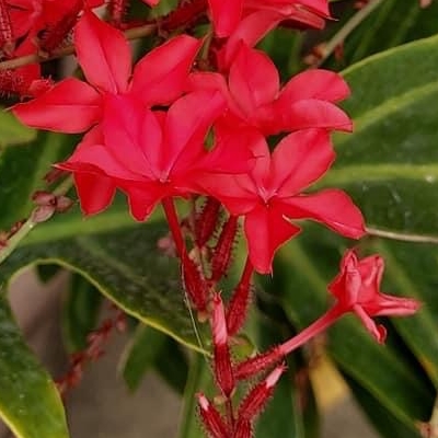 ==非台灣原生種== ●印度烏面馬(Plumbago indica、紅雪花、紫花丹) (栽培種;台灣物種名錄標名印度烏面馬;香港柴娃娃植物網標名紫花丹) |
