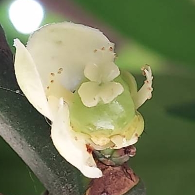 藤黃科福木屬 更多照片: 20220420_01 照片1、3:陳維琪拍攝 照片2:張儷蓁拍攝 照片2:雌雄同株;發現兩性花,但雌蕊退化,無盾形柱頭 |