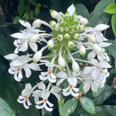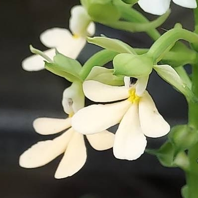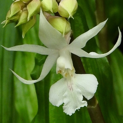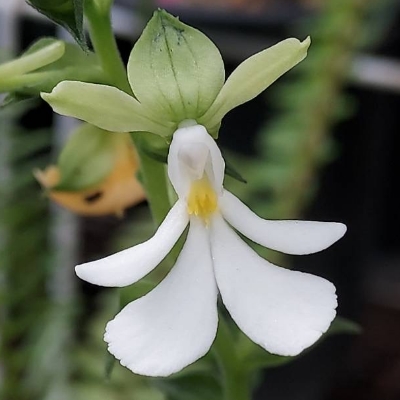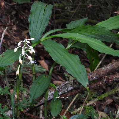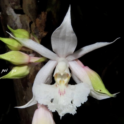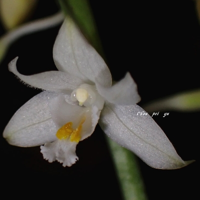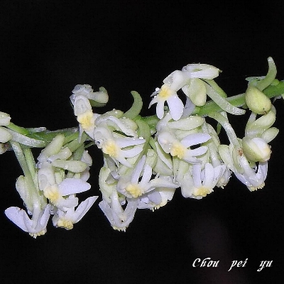 | 白花 尾唇根節蘭 |