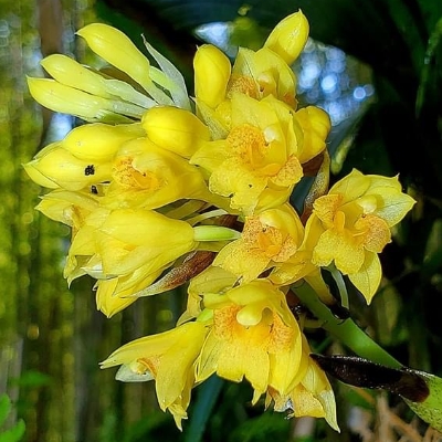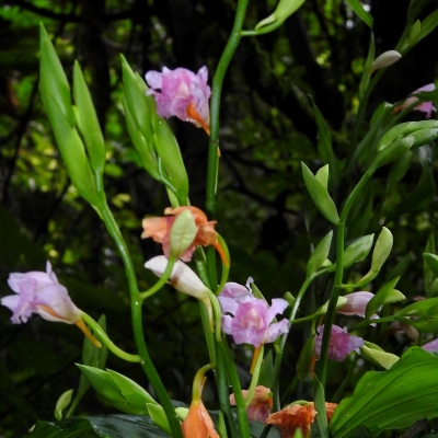 (Calanthe) ==台灣原生種== ●竹葉根節蘭(Calanthe densiflora、Styloglossum densiflorum) (原生種;原生於台灣、中國大陸至中南半島一帶;世界植物在線 POWO 標示 Styloglossum densiflorum = Calanthe densiflora,皆為有效學名,附有照片;Styloglossum = 落苞蘭屬;Calanthe = 根節蘭屬;地生蘭;花莖根生,較短,約20公分,花黃色,花距細長,側萼片具明顯尾尖) ●台灣根節蘭(Calanthe lyroglossa var. actinomorpha、Styloglossum formosanum、Styloglossum actinomorphum、輻形根節蘭) (原生種;原生於台灣和海南島;世界植物在線 POWO 標示 Styloglossum formosanum = Styloglossum actinomorphum = Calanthe lyroglossa var. actinomorpha,皆為有效學名;Styloglossum = 落苞蘭屬;Calanthe = 根節蘭屬;台灣物種名錄將 Styloglossum formosanum 標名台灣根節蘭,標示為原生種;將 Styloglossum actinomorphum 標名輻形根節蘭,標示為台灣特有種;地生蘭;地生蘭;株高可達70公分;單葉叢生,倒披針形,長可達60公分;總狀花序,花莖腋生,長可達40公分;花冠黃色,有花數十朵,唇瓣呈Y字形) •矮根節蘭(Calanthe angustifolia、Styloglossum angustifolium) (原生種;原生於台灣、中國大陸至爪哇島一帶;世界植物在線 POWO 標示 Styloglossum angustifolium= Calanthe angustifolia,皆為有效學名;Styloglossum = 落苞蘭屬;Calanthe = 根節蘭屬;地生蘭) ●黃根節蘭(Calanthe striata、Calanthe sieboldii、黃花根節蘭、川上氏根節蘭) (原生種;原產於東亞;世界植物在線標示 Calanthe sieboldii = Calanthe striata,皆為有效學名,附有照片) |