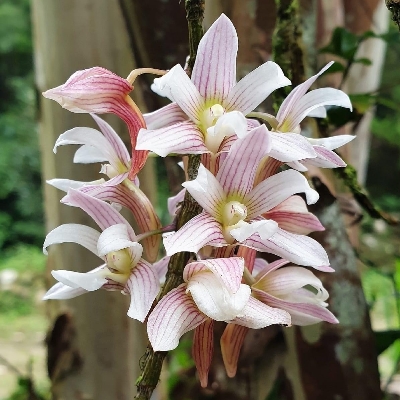 (原生種) ●櫻石斛(Dendrobium linawianum、金石斛) (原生種) •鴿石斛(Dendrobium crumenatum、木石斛) (原生種;非野外拍攝的,可能都是園藝進口的) ●長距石斛(Dendrobium chameleon、巒大石斛) (原生種;原生於台灣和菲律賓) ●雙花石斛(Dendrobium furcatopedicellatum) (台灣特有種) ●小雙花石斛(Dendrobium somai) (台灣特有種) ●燕子石斛(Dendrobium equitans) (原生種) •黃花石斛(Dendrobium catenatum) (原生種) •呂宋石斛(Dendrobium luzonense) (原生種) •著頦蘭(Dendrobium sanseiense) (原生種) ●臘石斛(Dendrobium nakaharae、蠟著頦蘭) (原生種;台灣物種名錄標名臘石斛,別名蠟著頦蘭;頦讀孩,意為下巴;著讀卓,意為附著;臘石斛和蠟著頦蘭,台灣物種名錄使用不同的字(臘和蠟)) •木槲(Dendrobium comatum) (原生種) •世富暫花蘭(Dendrobium parietiforme) (原生種) •淺黃暫花蘭(Dendrobium xantholeucum) (原生種) •尖葉暫花蘭(Dendrobium xantholeucum var. tairukounia) (台灣特有種) ●小攀龍(Dendrobium fargesii) (原生種) ●金草蘭(Dendrobium aurantiacum、金草) (原生種) |