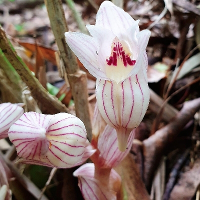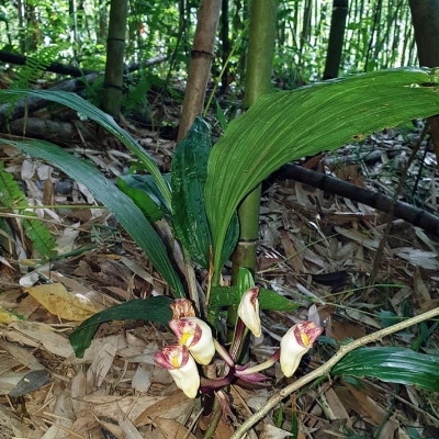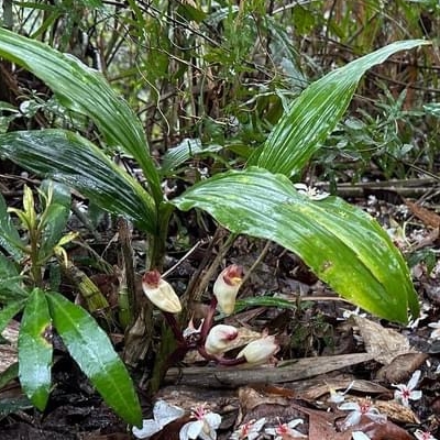 ●一葉罈花蘭(Acanthophippium striatum) (原生種;原生於台灣、日本至印度一帶;世界植物在線 POWO 和英文版的維基百科,標示屬名 Acanthophippium;台灣物種名錄和中文版的維基百科,標示屬名 Acanthophippium,拼錯一個字母;草本;地生蘭;每個假球莖上單生一葉;總狀花序,著花3~5朵;花冠罈狀,白色,有紫紅色平行脈紋) | •延齡罈花蘭(Acanthophippium pictum) (原生種;台灣僅產於蘭嶼;世界植物在線 POWO 和英文版的維基百科,標示屬名 Acanthophippium;台灣物種名錄和中文版的維基百科,標示屬名 Acanthophippium,拼錯一個字母;植株呈叢生狀;莖基部有節;單葉互生,長橢圓形;總狀花序,通常有花5-7朵;萼片黃底帶深紫色條紋,唇瓣基部龍骨突起) | |