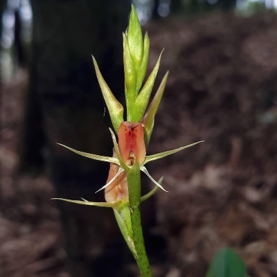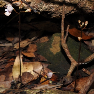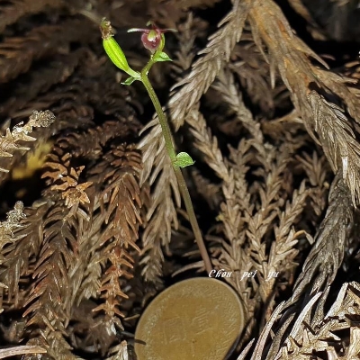(Stigmatodactylus、腐指柱蘭屬) ==台灣原生種== ●絲柱蘭(Stigmatodactylus shikokianus、Stigmatodactylus sikokianus) (原生種;台灣紅皮書標示易危;維基百科20240426標名指柱蘭屬指柱蘭,易與多種指柱蘭屬(又名叉柱蘭屬)的植物混淆,兩類花形差異甚大;本種植株直立,個體甚小,高4~10公分;葉片三角狀卵形;總狀花序,通常有花1~3朵;蕊柱黃綠色,中段具一叉狀突起物) |