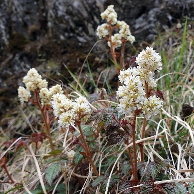 ●阿里山落新婦(Astilbe macroflora、大花落新婦) (台灣特有種;僅見於高海拔,莖高15~30cm,三出二回羽狀複業;花序長4~8公分,花徑約5mm) | ||