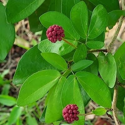 (栽培種;原生於南美洲的北半部(蘇利南位於南美洲北部的國家);世界植物在線 POWO 附有照片(相符);台灣物種名錄標名粉撲花,別名蘇利南合歡;維基百科標名蘇利南朱纓花;落葉灌木至小喬木;樹皮灰白色;二回羽狀複葉,互生;小羽片1對,小羽片的小葉6~12對(或更多),歪長卵形;頭狀花序,圓球狀,腋生;雄蕊花絲多且長,基部白色,上端粉紅色;莢果,長條扁平狀,長約10公分;豆莢成熟開裂如羊角狀) ●紅粉撲花(Calliandra tergemina var. emarginata、Calliandra emarginata、凹葉合歡) (栽培種;世界植物在線標示 Calliandra emarginata = Calliandra tergemina var. emarginata,皆為有效學名;二回羽狀複葉,羽片1對,每羽片小葉1對) |