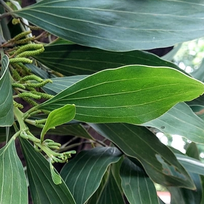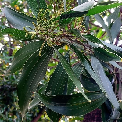 豆科相思樹屬 更多照片: 20210620_07 照片1:張儷蓁拍攝 照片2:林美燕拍攝 照片3:潘玉郎拍攝 照片2:相思樹的真假是1~2回羽狀複葉,只有在幼苗初期才會出現,之後長出來的是由葉柄變態的假葉 |