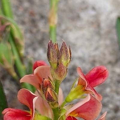 (原生種;維基百科和香港柴娃娃植物網皆標名柴胡葉鏈莢豆;直立草本,分枝;單葉互生,狹長橢圓形至線狀披針形,先端漸尖;總狀花序,腋生,紅色;莢果平直,4~6節,光滑無毛;香港柴娃娃植物網附有照片,全株和莢果光滑無毛) •黃花鏈莢豆(Alysicarpus vaginalis var. taiwanensis、黃花煉莢豆) (原生種) |