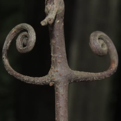 (Phanera) ==台灣原生種== ●菊花木(Phanera championii、龍鬚藤、燕尾藤、缺葉藤、九龍藤、鉤藤) (原生種;原生於台灣、中國大陸、越南...等地;維基百科標名龍鬚藤;粗藤切面有美麗的花紋,形似水墨菊花而得名;常綠木質藤本;以小枝特化的卷鬚纏繞攀爬;單葉互生,卵形,全緣,先端2裂狀或單尖狀;總狀花序,腋生或頂生;花多而小,花瓣5枚,白色,小花梗細長;莢果鐮刀形,成熟褐色,長約10公分;種子扁圓形) |