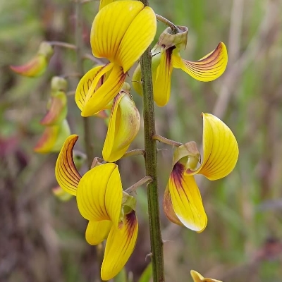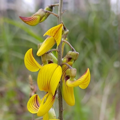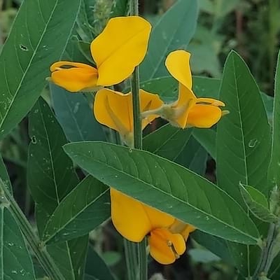 (入侵種;原生於非洲南部;世界植物在線 POWO 附有照片(相符);台灣物種名錄標名南美豬屎豆(南美是歸化地,並非原生地),別名大野百合、光萼野百合,標示為入侵種;維基百科標名光萼豬屎豆;灌木;莖直立,株高可達1.5公尺以上;三出葉,互生;小葉橢圓形至狹長橢圓形;總狀花序,頂生,花序甚長;花冠黃色,側瓣基部具紫紅色斑,萼片5淺裂,光滑無毛;莢果長筒形,長約3~4公分,無毛) •西非豬屎豆(Crotalaria goreensis) (歸化種;原生種) •恆春野百合(Crotalaria incana、恆春豬屎豆) (歸化種;半灌木如豬屎豆;三出葉,先端具小突尖;莢果密被毛,長圓筒狀,長約3~4公分) •翼莖野百合(Crotalaria bialata) (歸化種;莖具翼;單葉,長橢圓形) •紫花野百合(Crotalaria spectabilis、大托葉豬屎豆) (歸化種;花冠黃色,並非紫色) •披針葉野百合(Crotalaria lanceolata) (歸化種) ●太陽麻(Crotalaria juncea、菽麻、印度麻、蘭鈴豆) (歸化種;綠肥植物;株高可達2米;單葉,長橢圓形,被短柔毛,先端具短尖頭;莢果圓柱形,被短柔毛,長約3~4公分) |