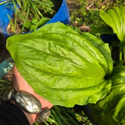 ●巨葉車前草(Plantago macronipponica) (原生種; 台灣物種名錄附有照片;葉柄長15~25公分,葉片長25~30公分) |