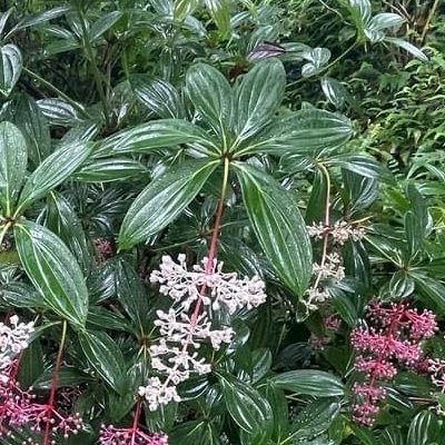 ●台灣野牡丹藤(Medinilla formosana) (台灣特有種;台灣紅皮書標示易危,可能是指野生稀有;輪生葉3~6枚;主葉脈5條) ==非台灣原生種== ●多花野牡丹藤(Medinilla myriantha) (栽培種;台灣物種名錄20240907尚未登錄此物種中文名及學名;輪生葉2~3枚;主葉脈5或7條) |