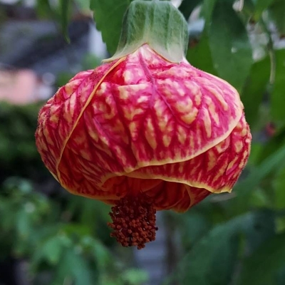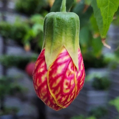 ●紅萼莔麻(Abutilon megapotamicum、蔓性風鈴花、紅燈籠、懸風鈴花、巴西風鈴花) (葉互生,心形,葉端尖,葉緣有鈍鋸齒,有時分裂;花單生於葉腋,具長梗,下垂,花瓣5枚,黃色;花萼紅色;香港柴娃娃植物網標名蔓性風鈴花) | |