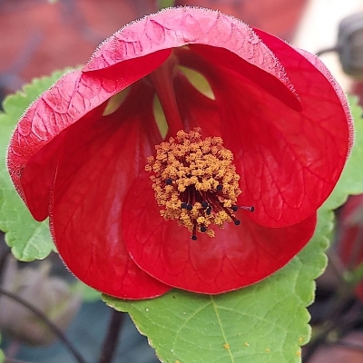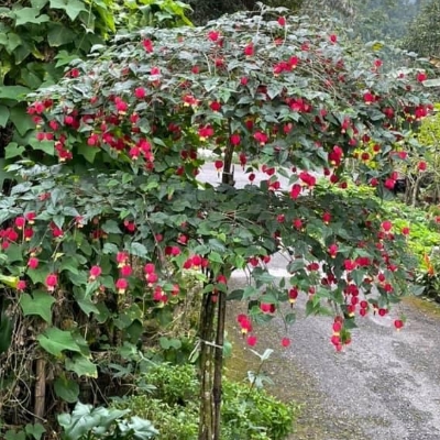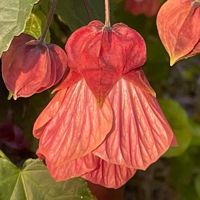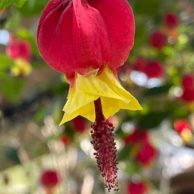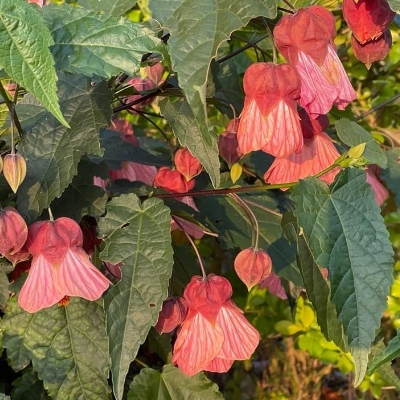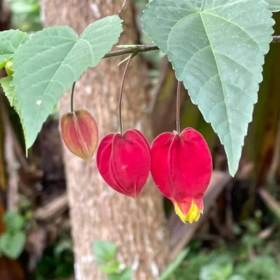 ●冬葵子(Abutilon indicum、磨盤草) •畿內冬葵子(Abutilon indicum) ●風鈴花(Abutilon striatum、宮燈花) (香港柴娃娃植物網標名金鈴花;別名金鈴花,適於黃色花;別名紋瓣懸鈴花,適於紋瓣花;別名宮燈花,則適於紅色花) |