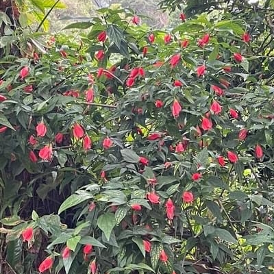 (Malvaviscus、南美朱槿屬) ●南美朱槿(Malvaviscus arboreus、懸鈴花、垂花懸鈴花、捲瓣朱槿、大紅袍) (香港柴娃娃植物網標名垂花懸鈴花;維基百科20240119標名懸鈴花Malvaviscus arboreus,而將別名垂花懸鈴花的南美朱槿標註學名為Malvaviscus penduliflorus,兩個學名有異,可能不同物種) ●宮粉南美朱槿(Malvaviscus arboreus ...) (香港柴娃娃植物網標名為宮粉懸鈴花) |