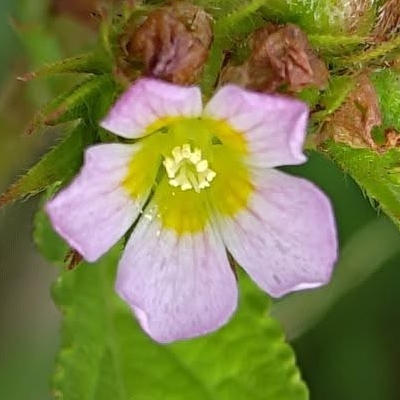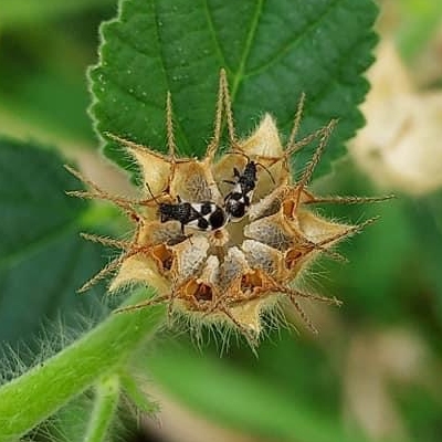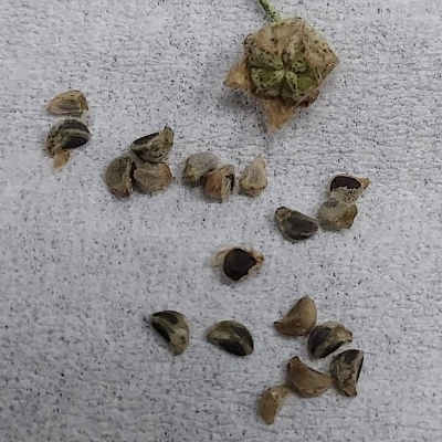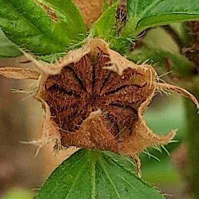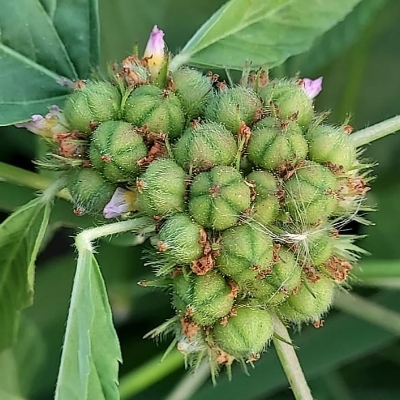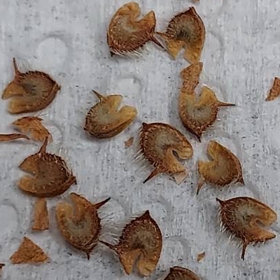 錦葵科金午時花屬 更多照片: 20210315_01 照片:廖金枝拍攝 照片3:發現種子具有2枚尖刺,刺上著生許多倒鉤的小刺,類似大花咸豐草 |
