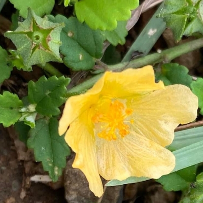(金為黃色之意,午時花為正午開花之意;維基百科標名黃花稔屬) ==台灣原生種== ●金午時花(Sida rhombifolia、Sida rhombifolia subsp. rhombifolia、菱葉金午時花、白背黃花稔) (原生種;香港柴娃娃植物網標名白背黃花稔;莖直立,葉形變化大,菱形至長楕圓形,葉緣前1/3無鋸齒,花梗細長,種子具2枚短刺) ●細葉金午時花(Sida acuta、黃花稔、尖葉四米草) (原生種;維基百科標名黃花稔;直立亞灌木狀草本,高可達1.5公尺;分枝多;單葉互生,披針形,鋸齒緣;花單生或成對生於葉腋,花冠黃色,花梗長4~12mm;蒴果近球形,分果片4~9枚,種子頂端具2枚短芒) ●圓葉金午時花(Sida cordifolia) (原生種;直立小灌木,高可達1.5公尺;分枝多;全株被毛;單葉互生,心形至卵形,鋸齒緣;花單生葉腋,具長梗;花瓣5枚,黃色;種子具2枚長刺) |