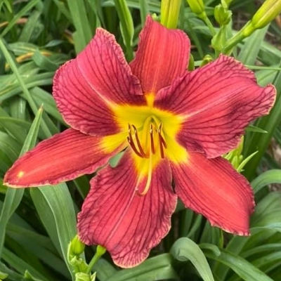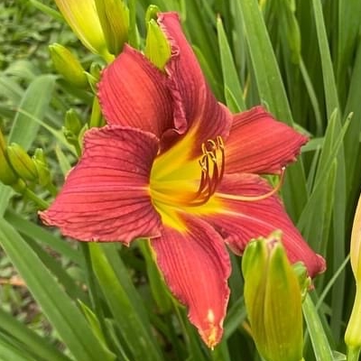 阿福花科萱草屬 更多照片: 20230425_01 照片:張儷蓁拍攝 品名:豔紅佳人(萱草花蓮2號) |