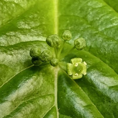 (Helwingia) ==台灣原生種== ●台灣青莢葉(Helwingia japonica subsp. taiwaniana、葉長花、葉上珠) (原生種;亞種;台灣物種名錄標名台灣青莢葉;小灌木;單葉互生,長卵形,鋸齒緣;雌雄異株,花單性,綠色或黃綠色,生於葉面中脈前段;雄花呈繖形排列,花瓣3~4枚,雄蕊3~4枚;雌花大多單生,或2~3朵簇生,花瓣3~4枚,柱頭3~4裂;漿果卵形,成熟紫黑色) |