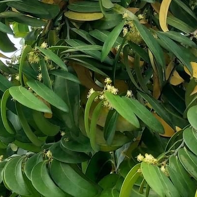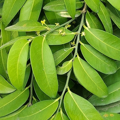 ==非台灣原生種== •羅氏核果木(Putranjiva roxburghii、drypetes roxburghii、印度假黃楊) (栽培種;原生於印度至新幾內亞島;世界植物在線 POWO 標示 drypetes roxburghii = Putranjiva roxburghii,皆為有效學名;台灣物種名錄查無此學名及中文名;香港柴娃娃植物網標名假黃楊,別名藥用核果木;網路資料有別名無核盤果木、印度無憂樹,應是早期錯誤之翻譯(不建議使用);喬木;高度可達10幾公尺;單葉互生,兩列狀,枝條下垂;葉形橢圓形至狹長橢圓形,鋸齒緣至全緣,波浪緣;雌雄異株;無花被片;雌花1~3朵腋生,有長梗;雄花叢生狀;核果卵球形) |