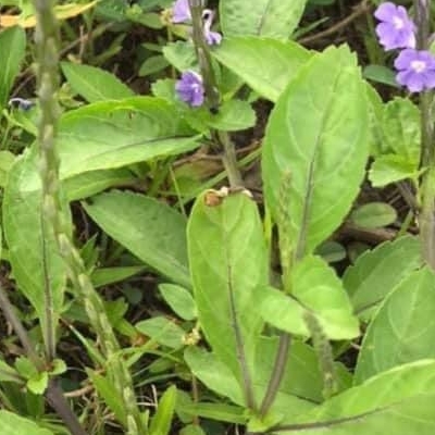 (長穗木、藍蝶猿尾木和牙買加長穗木,台灣物種名錄是3個不同學名,但台灣物種名錄列出的別名和照片混為一種,無所適從) ●長穗木(Stachytarpheta urticifolia、木馬鞭、蕁麻葉假馬鞭) (歸化種;原生於南美洲北部;台灣物種名錄標名長穗木,別名木馬鞭、假敗醬;維基百科標名長穗木,別名木馬鞭、牙買加長穗木,附有照片(相符);香港柴娃娃植物網標名藍蝶猿尾木,附有照片;半灌木;葉面皺褶明顯;花色深藍紫) |